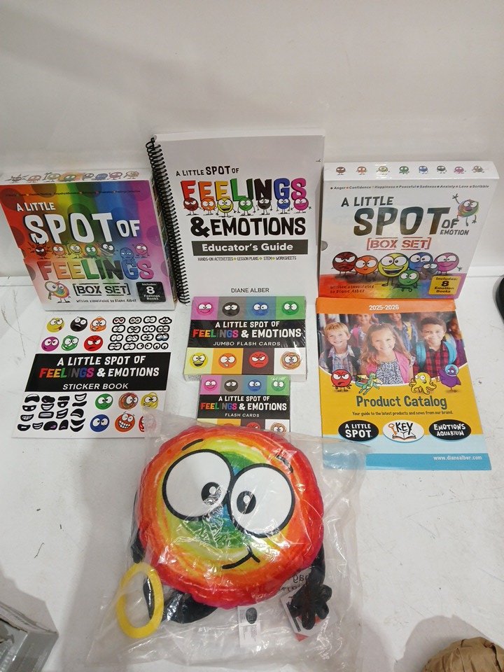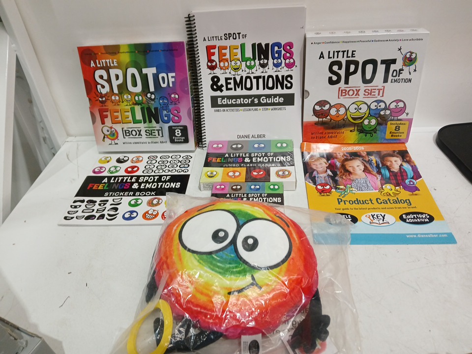 A LITTLE SPOT Feeling AND EMOTIONS Detective SET - Plush, FLASH CARDS, SRTICKER BOOK, GUIDE AND BOOKS