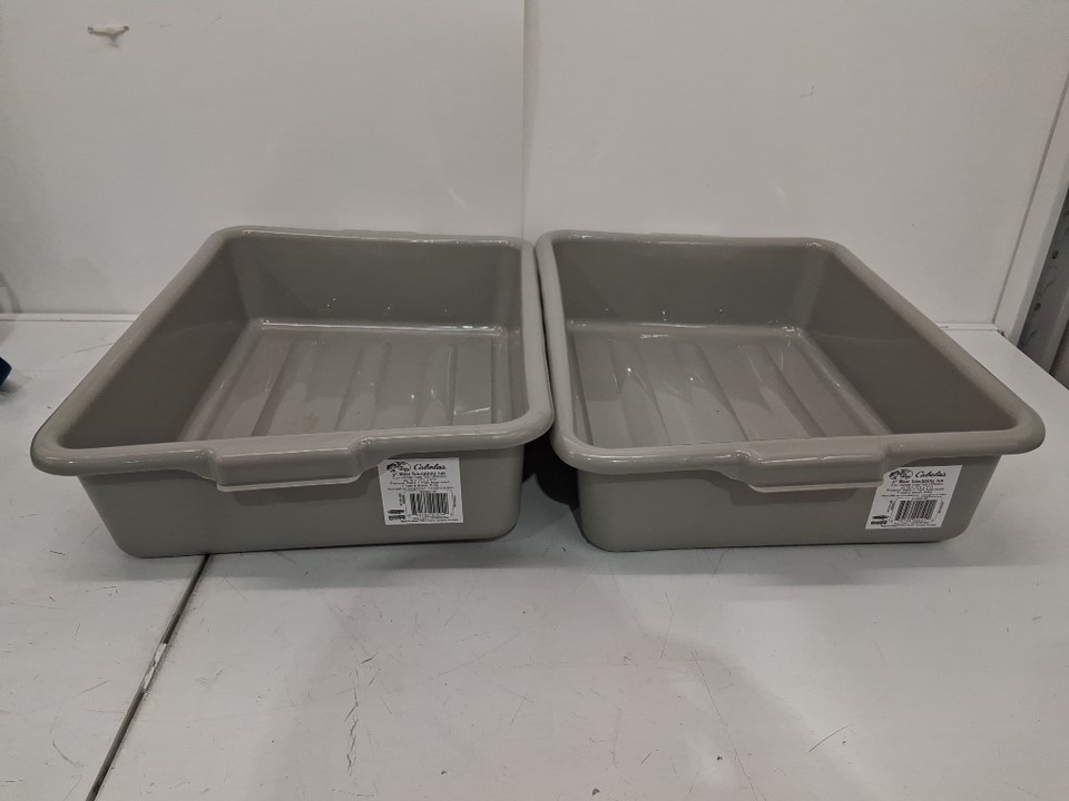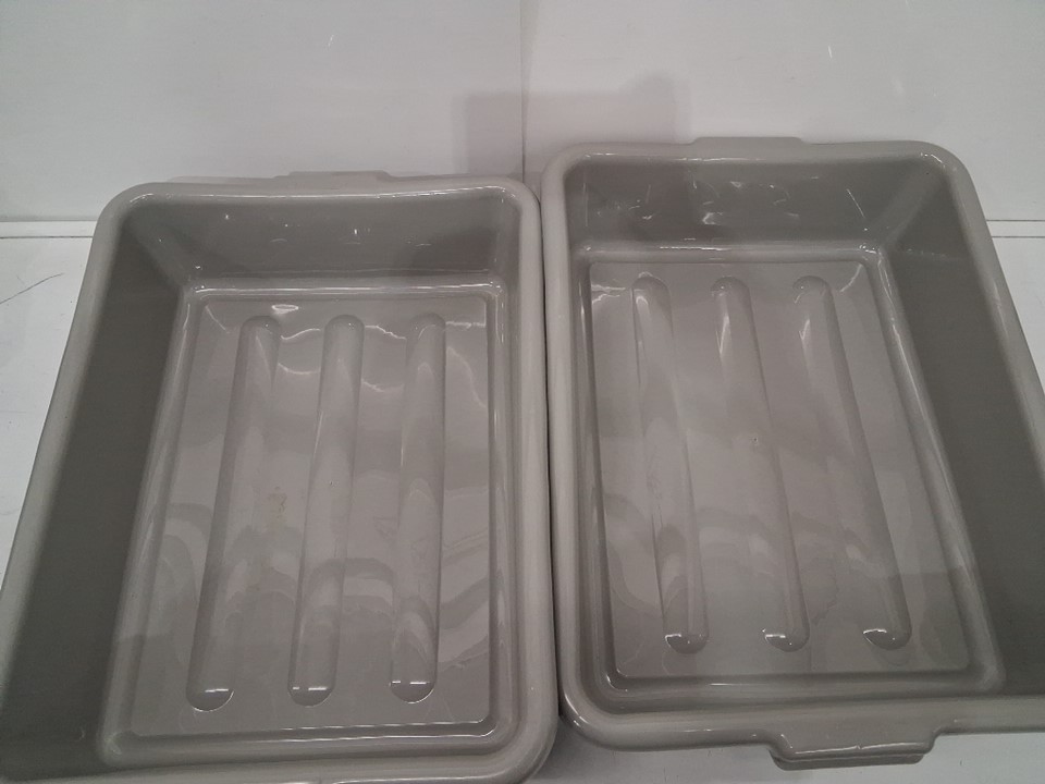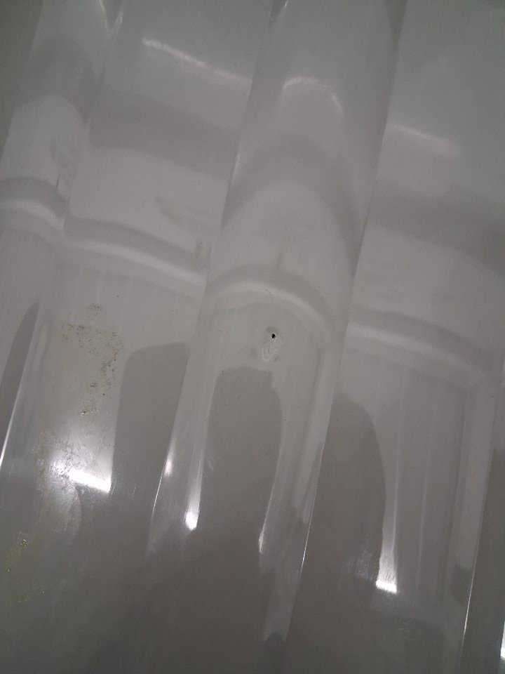 both bins have small pin holes on bottom center. One bin has sticker residue