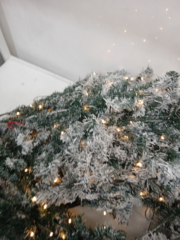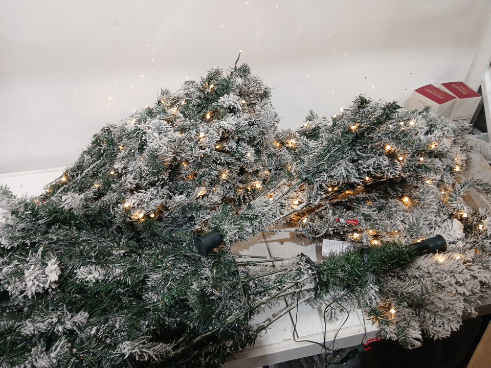 Costway Pre-Lit Snow Flocked Hinged Pine Artificial Christmas Tree - 9FT - Green/White (Model: CM22730)