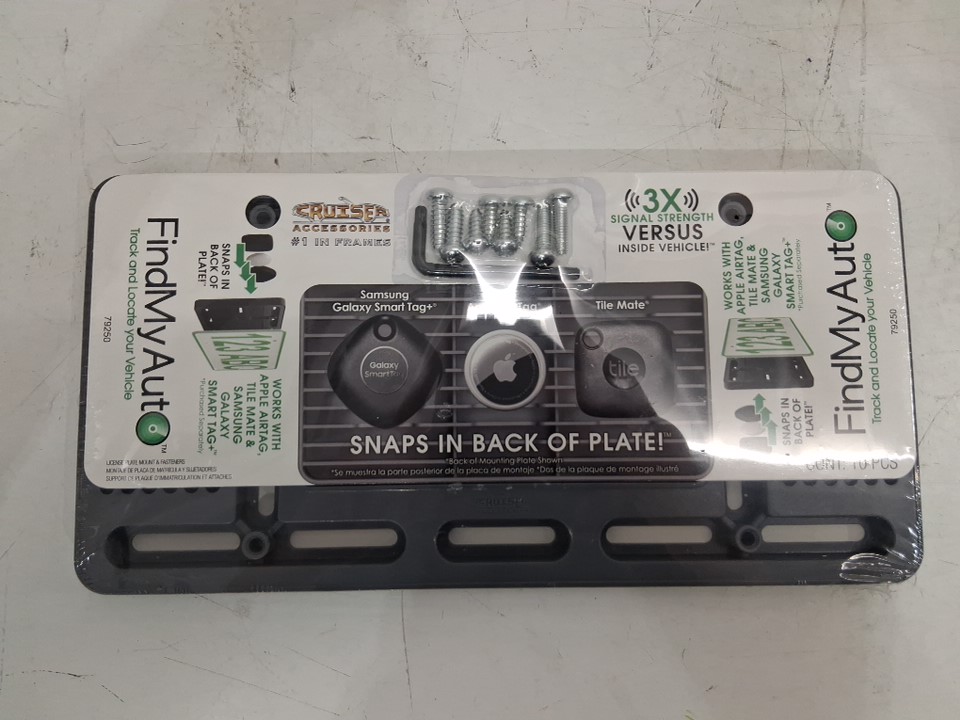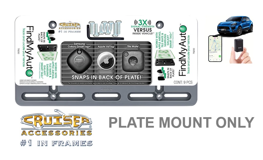 Cruiser Accessories License Plate Mount For GPS Trackers - Works with Apple Air Tag - Galaxy Smart Tag+ - Tile Mate - 6" x 12" - Grey (Model: 79250)