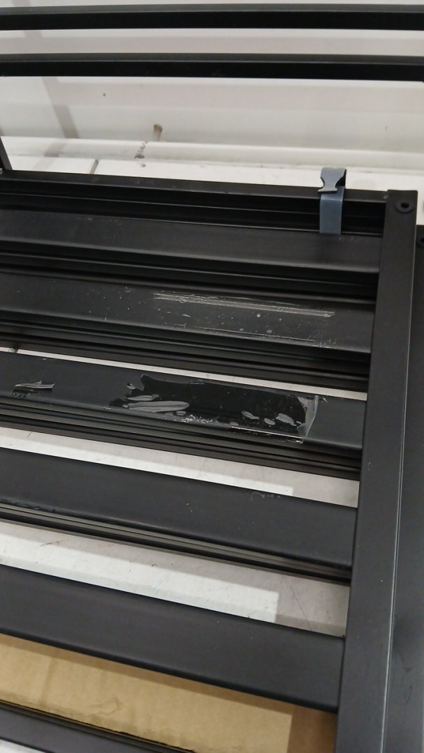some tape residue stuck to the metal from shipping as well as we are missing one of the feet