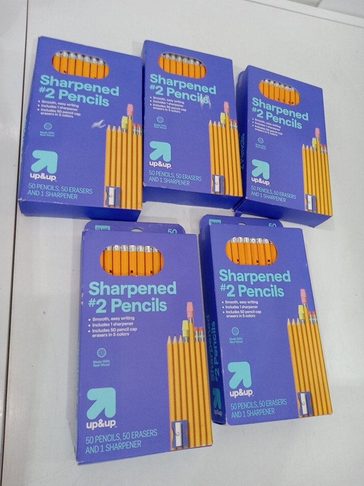 5 (101PC) up&up 50 Sharpened #2 Wood Pencils, 50 ERASERS plus sharpener