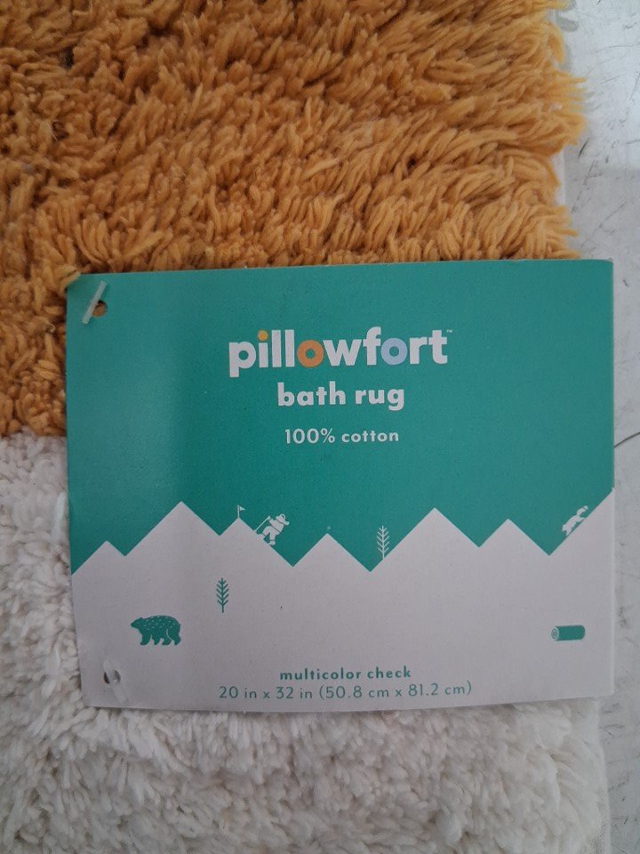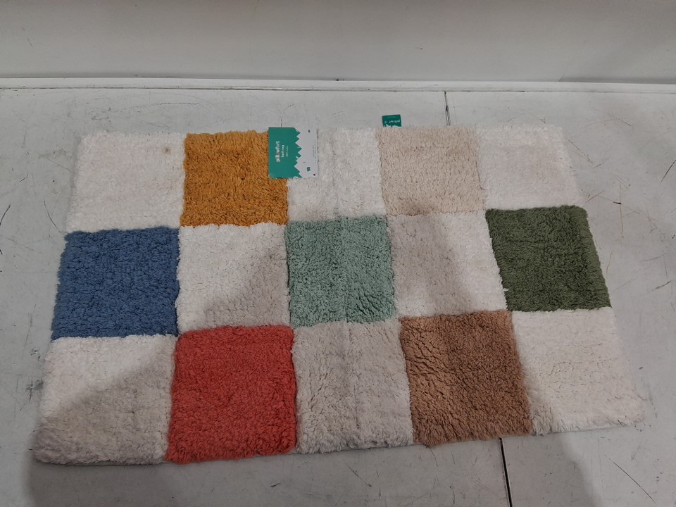 Pillowfort checkered plush bathmat with ant-slip bottom - 20"x32" - multicolor