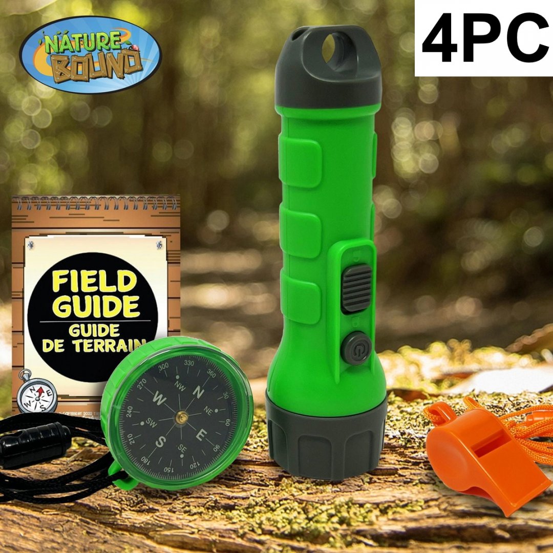 4PC Kids Nature Bound Outdoor Explorer Kit with Flashlight, Compass, Whistle, and Field Guide - Multicolor