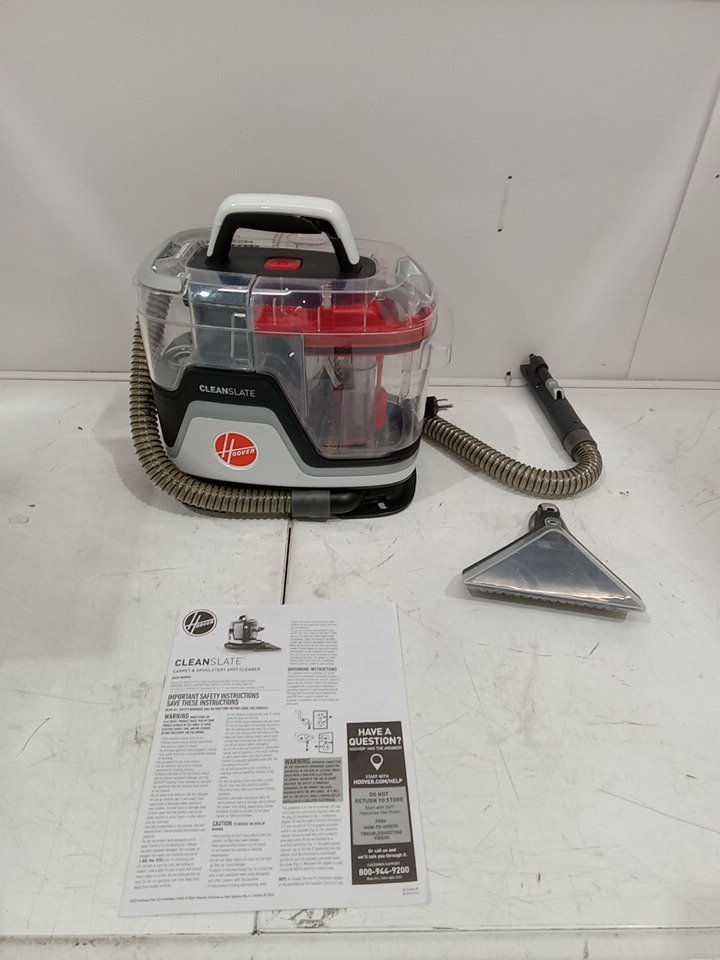 Please note that the tight spot tool, hose rinse tool and the trial solution are missing from the original packaging. There are dirt residue on the hose and wide path tool. Tested for power and motor function only. (Please see photos)