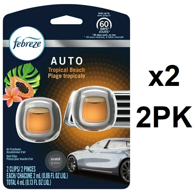 2 (2pk) Febreze Auto Tropical Beach Car Vent Clip