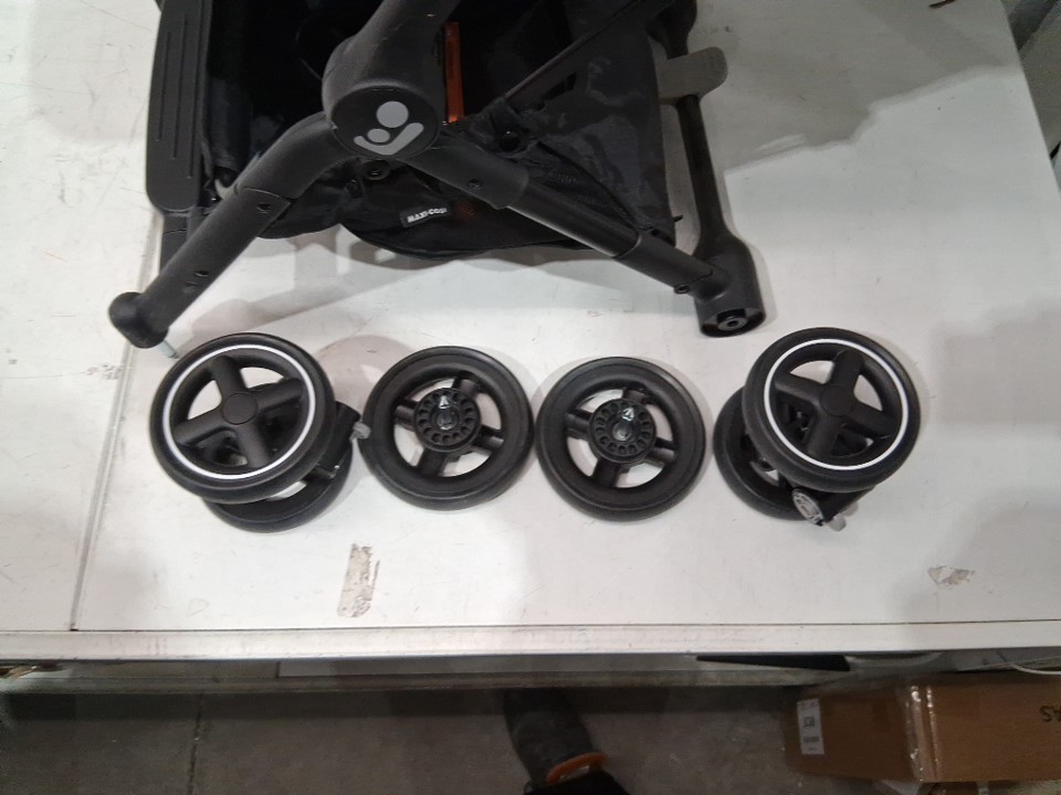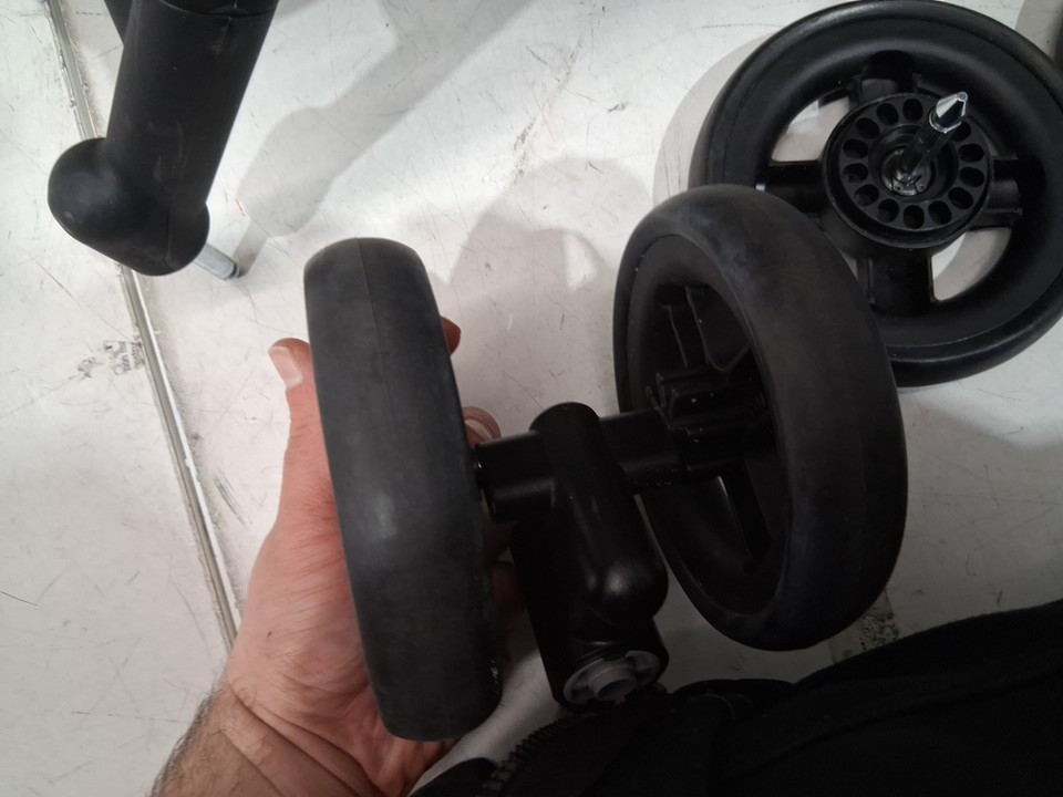 scuff and scratch marks on item / wheels are dirty indicating prior use