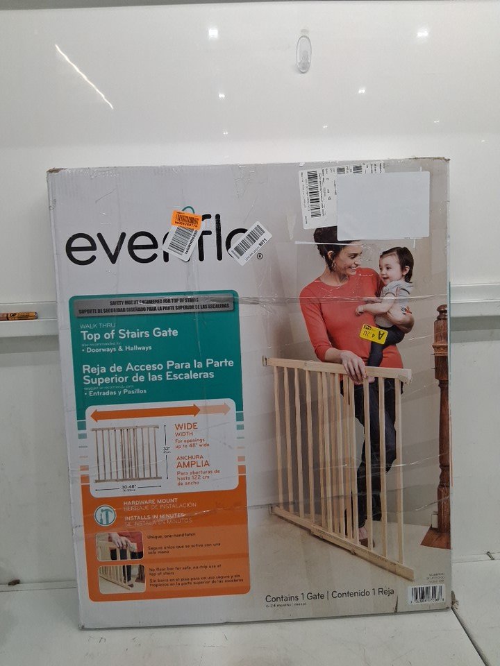 EVENFLO WALK-THRU TOP OF STAIRS extra wide BABY and PET GATE - 32" x 30" - 48" - NATURAL WOOD brown (MODEL: 1050)