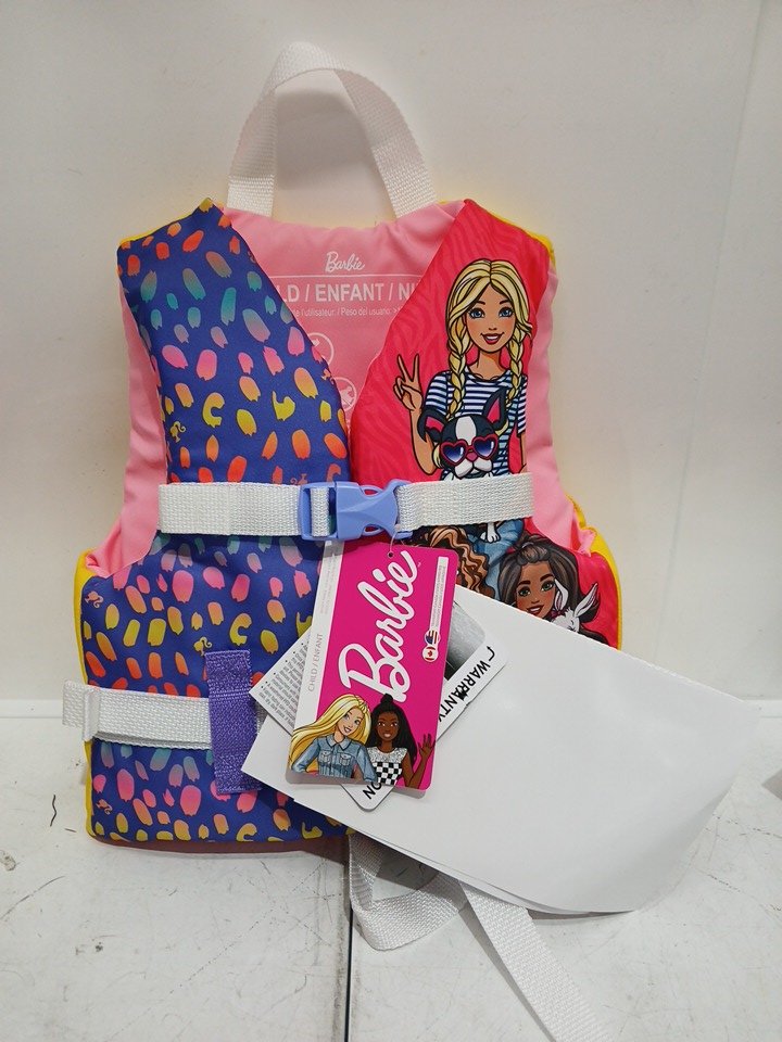 Barbie Child life jacket vest - 33-55lbs - pink yellow