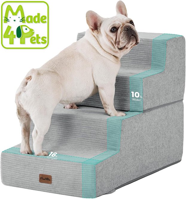 made4pets 4-step foam pet stairs for beds & couches - 28" x 16" x 18" h - Grey