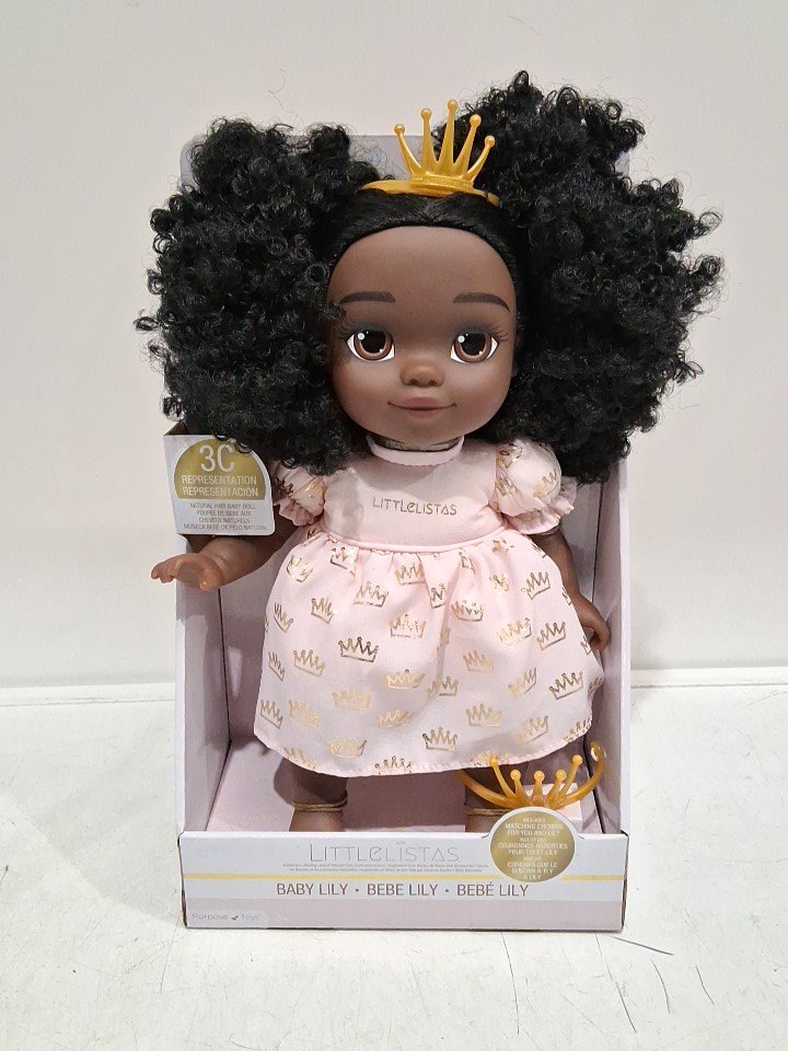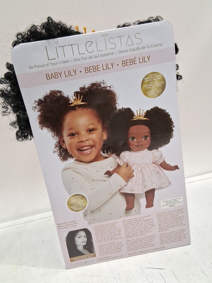 Littlelistas Lily doll with natural hair AND MATHCING CROWN FOR DOLL AND KID - 14" HEIGHT - PINK