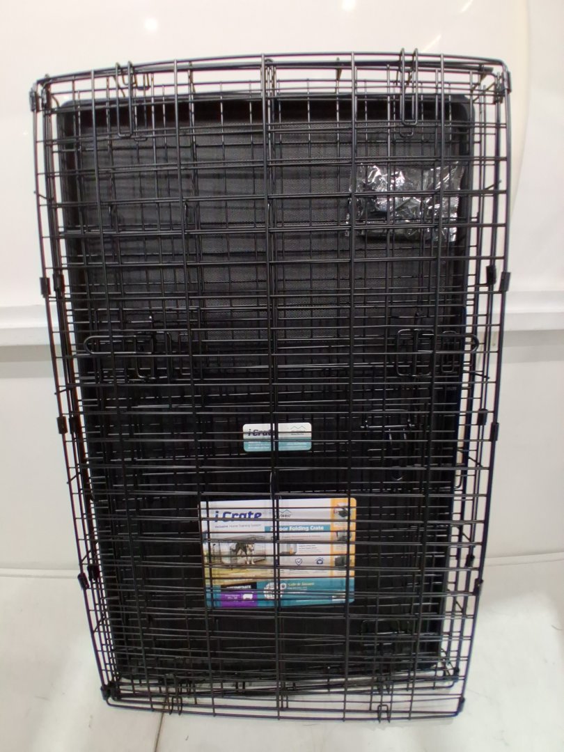 Midwest iCrate Double Door Folding Metal Dog Crate with Divider Panel, Floor Protecting Feet, and Leak-proof Dog Tray - 36" X 23" X 25" - Black (Model:1536DDU)