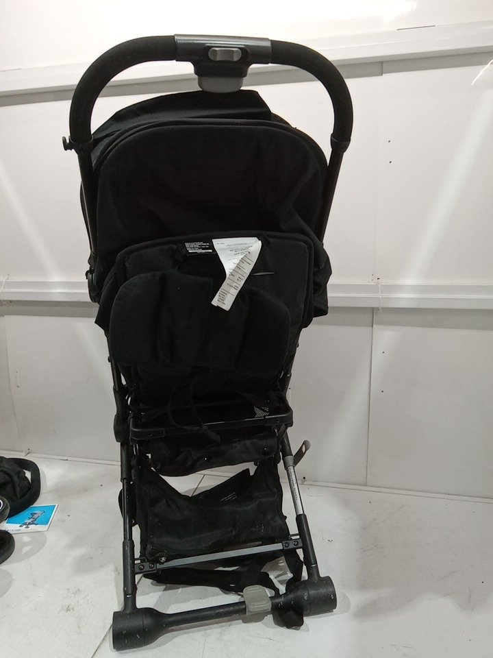 There are heavy dirt residue and stains on the wheels, back side of the stroller and handle. There minor dust residue on the seat stroller due to previous use. (Please see photos)