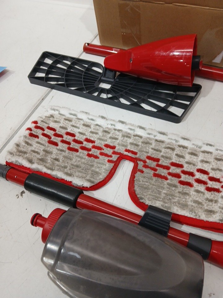 The pad is dirty from use and the bottles has some water marks and tape residue.