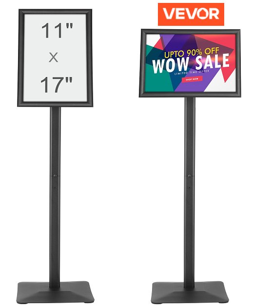 Vevor rectangular Pedestal Sign Holder Poster Stand with metal base - 17" x 11" - Black (model: sw-05)
