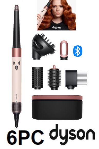 6PC DYSON i.d curly + coily airwrap multi styler and hair dryer with bluetooth - pink / rose gold ( model: hs08)