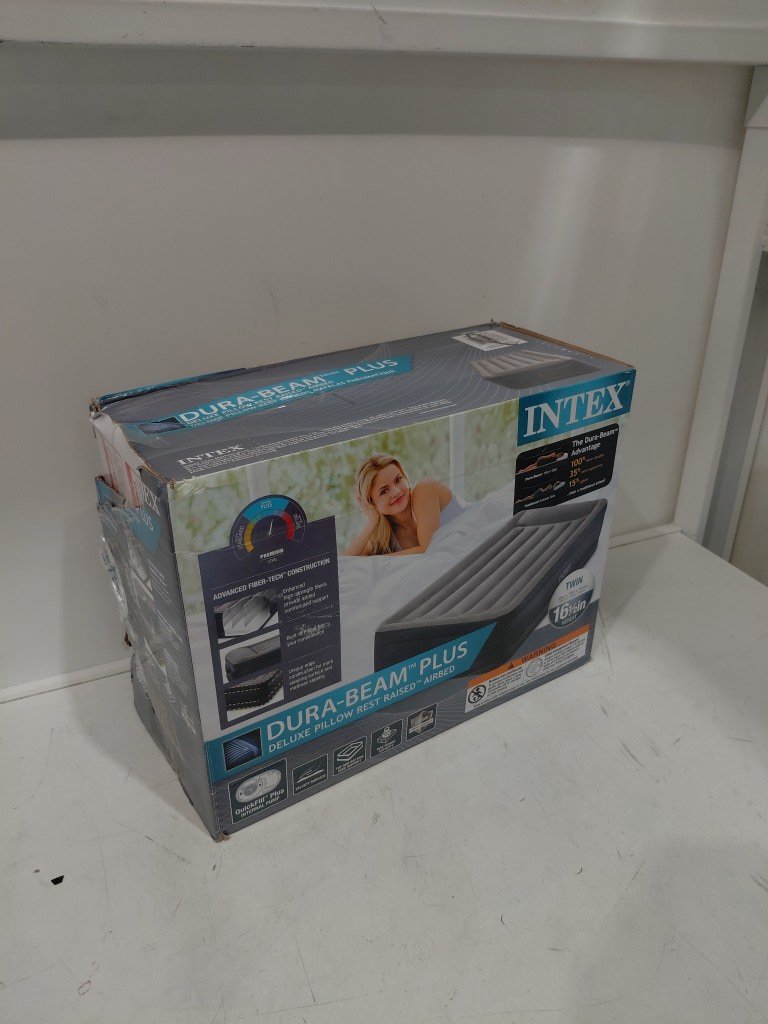 INTEX DURA-BEAM DELUXE SELF-INFLATING/DEFLATING AIR MATTRESS WITH BUILT-IN PILLOW - twin (16.5"X39"x75") - GREY (MODEL: AP619D 64131ca)