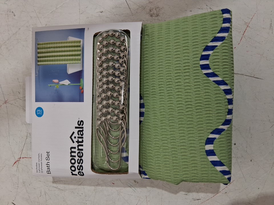 room essentials FABRIC SHOWER CURTAIN bath SET - 72" x 72" - green/blue