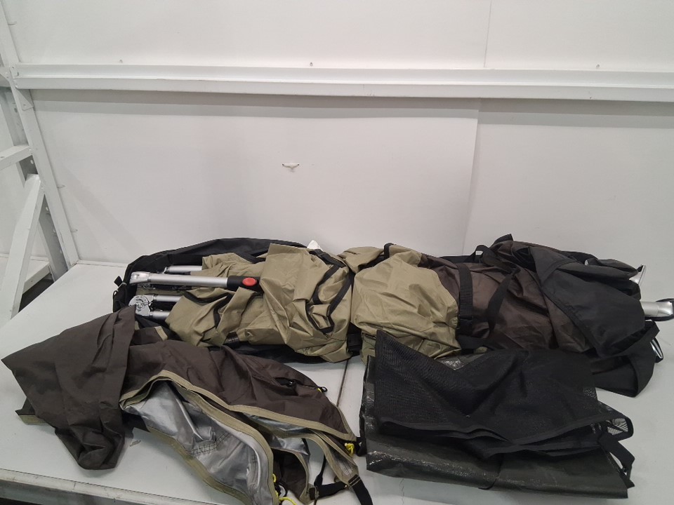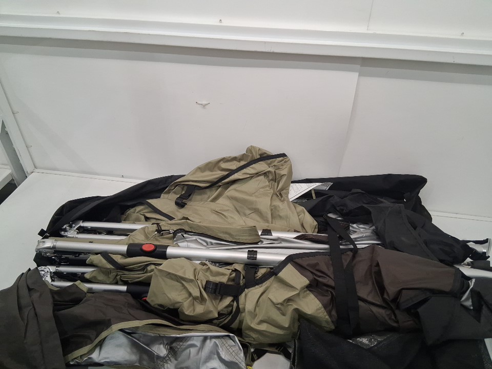 Bottoms of foot bases have light scratching. looks like shelter was used as demo