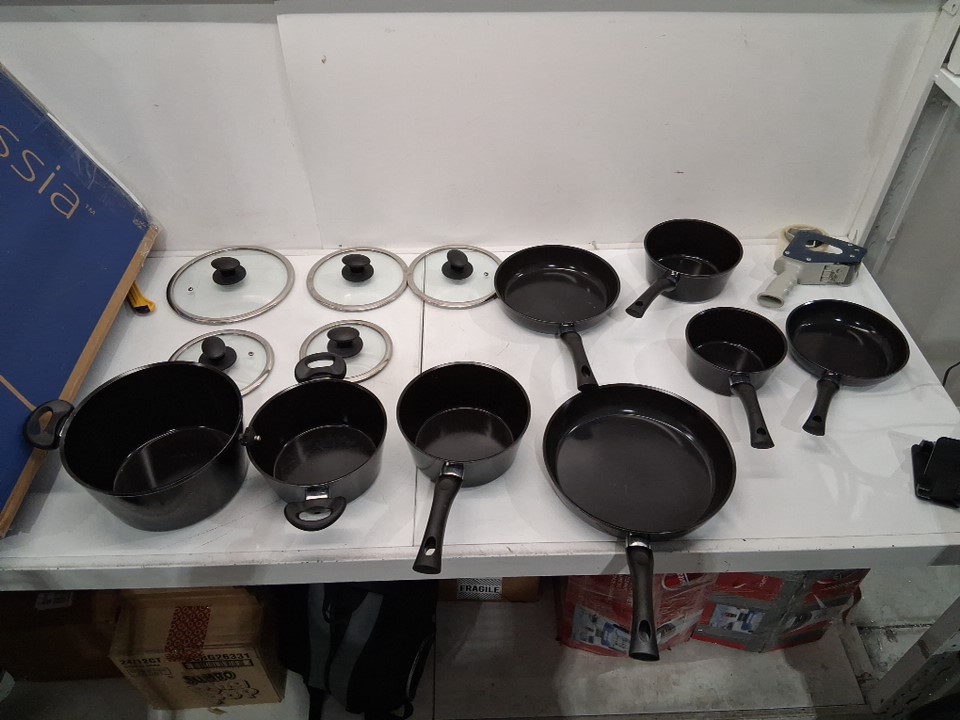 one of the pots is missing a handle and has some scratches on it (see photos) 5 lids - 8 pots/pans