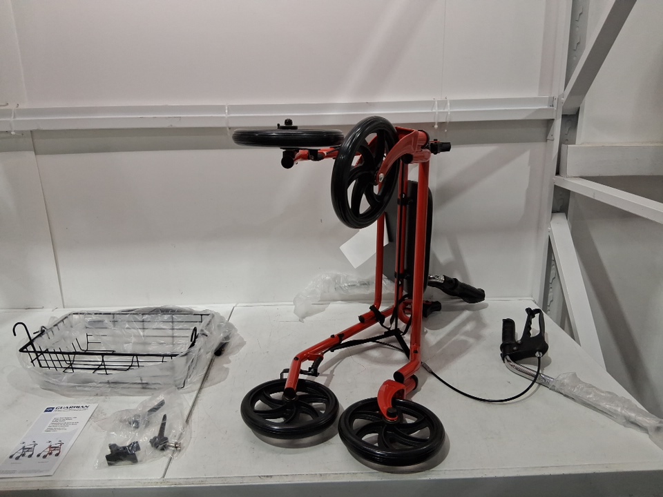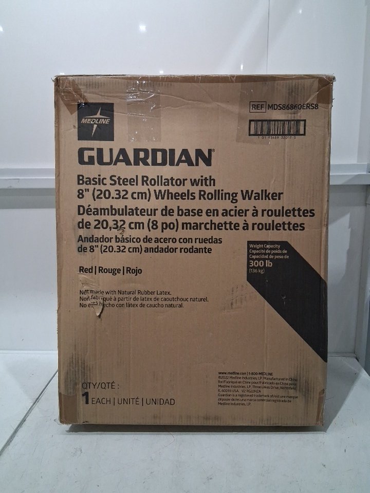 MEDLINE GUARDIAN BASIC STEEL ROLLATOR WITH 8" WHEELS ROLLING WALKER - 300LBS CAPACITY - RED (MODEL: MDS86860ERS8)