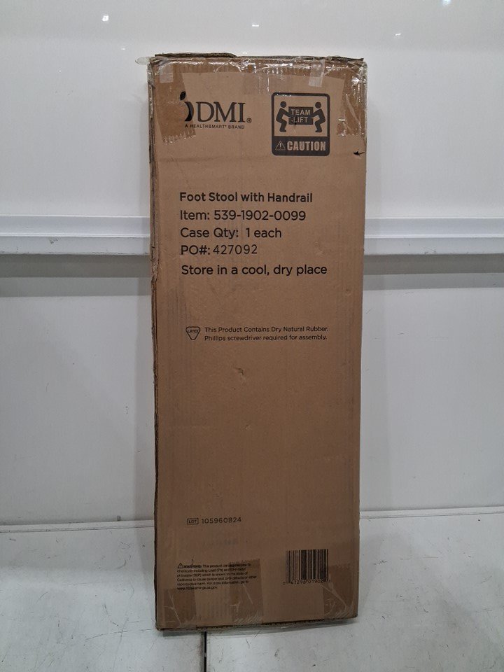 DMI SAFETY STEP FOOT STOOL WITH HANDRAIL - 300LBS CAPACITY - STAINLESS STEEL (MODEL: 539-1902-0099)