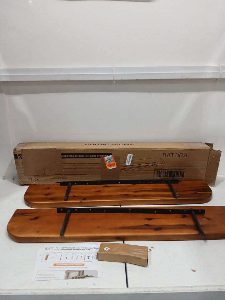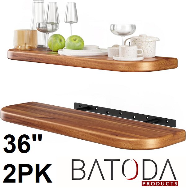 2pk batoda Wall Mounted Acacia Wood Floating Shelves with rounded edges - 36" - brown