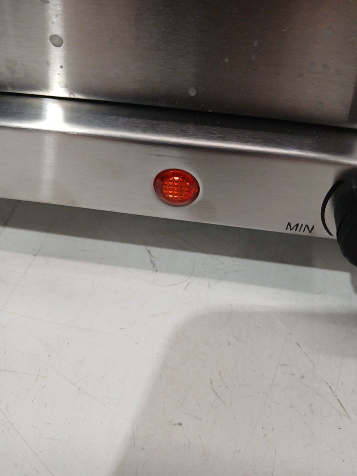 The base is slightly discolored and the trays have some water spots from use. Tested for power.