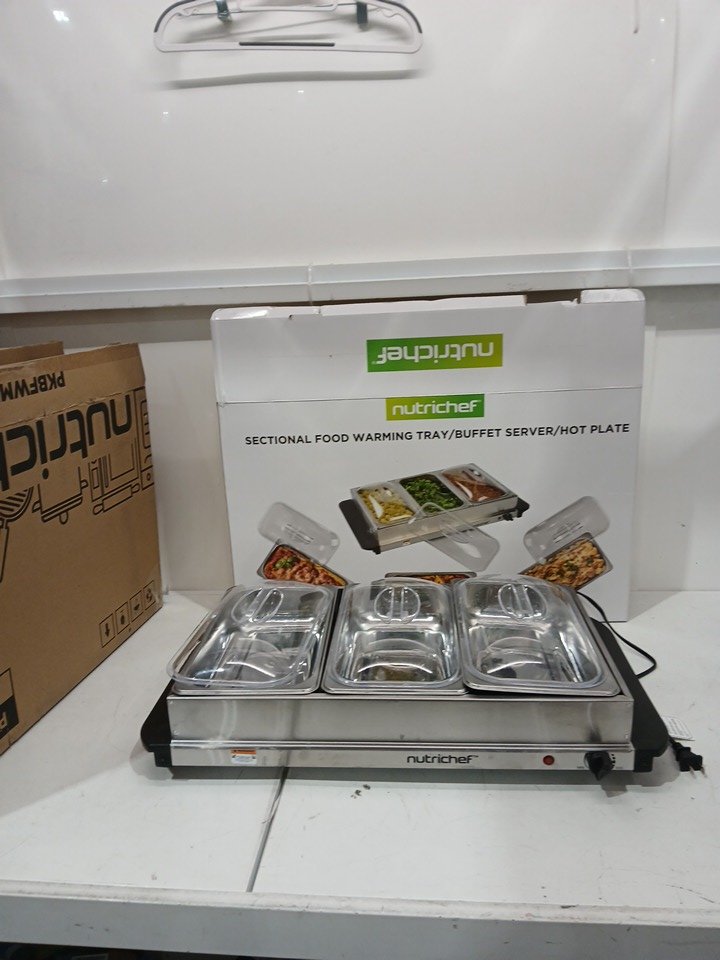 nutrichef portable hot buffet food warmer - 3.5q - silver (model:PKBFWM33.0)