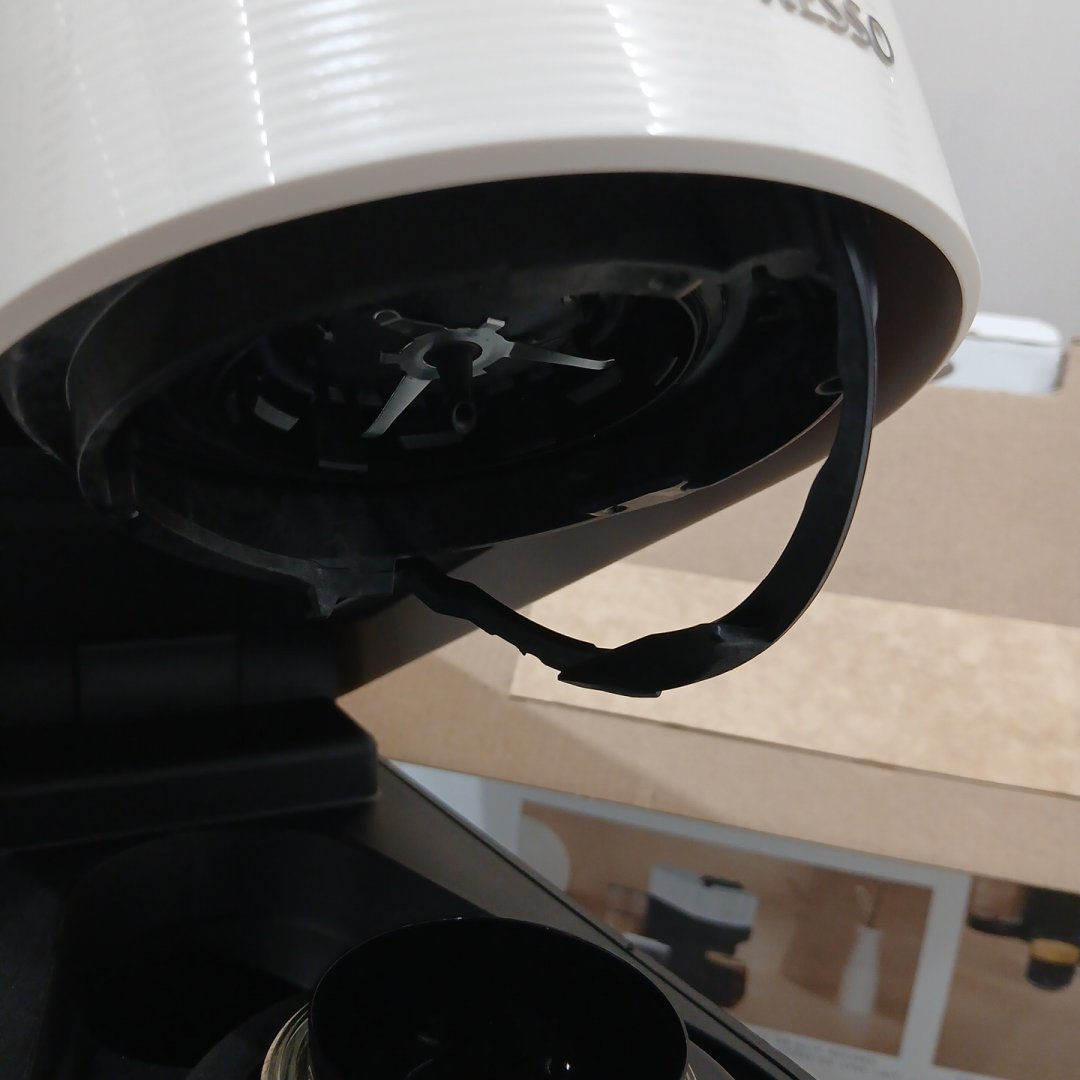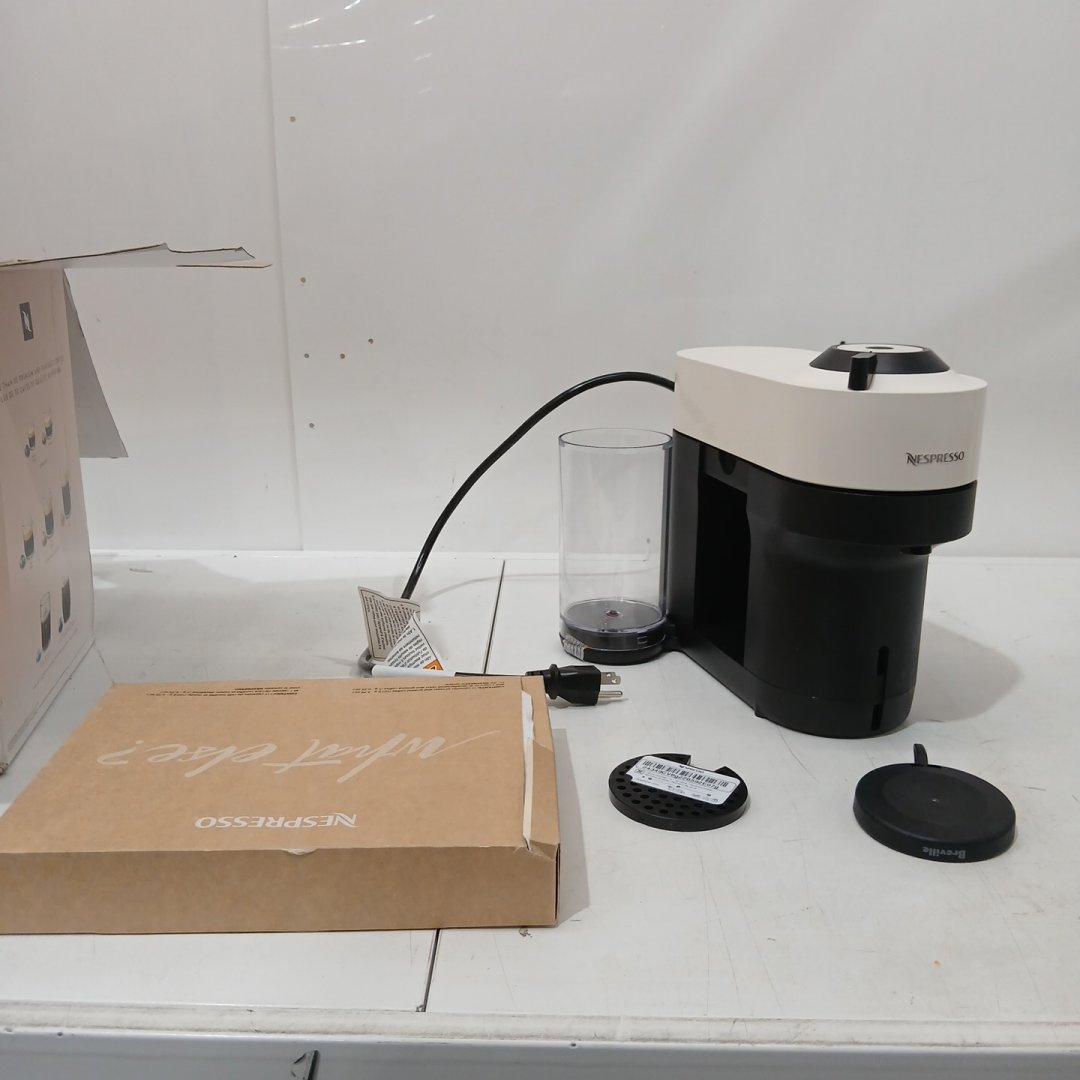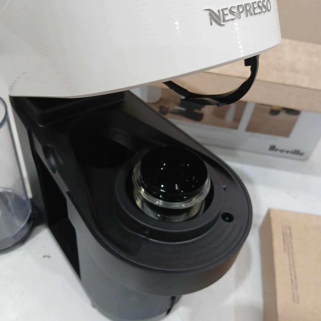 Item is missing side door for "used pods" It is also missing the lid of the water reservoir, and does have some damage to the interior lid lock mechanism but should still function as it locks down. Tested for power. Signs of previous use.