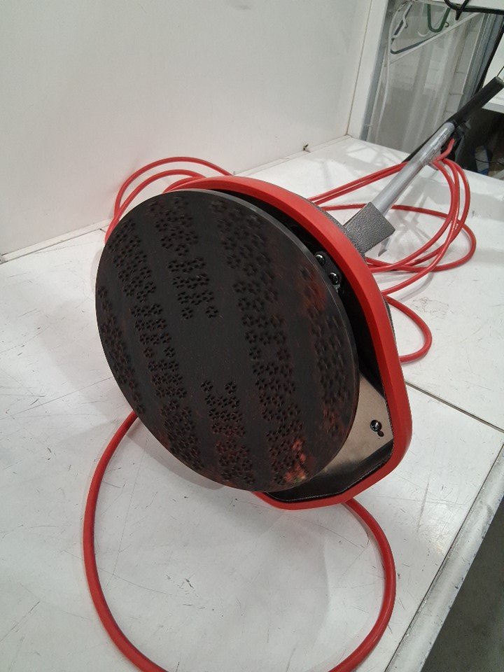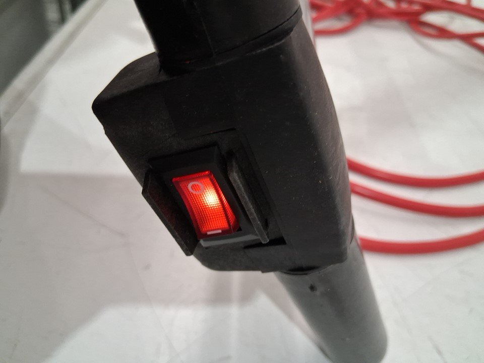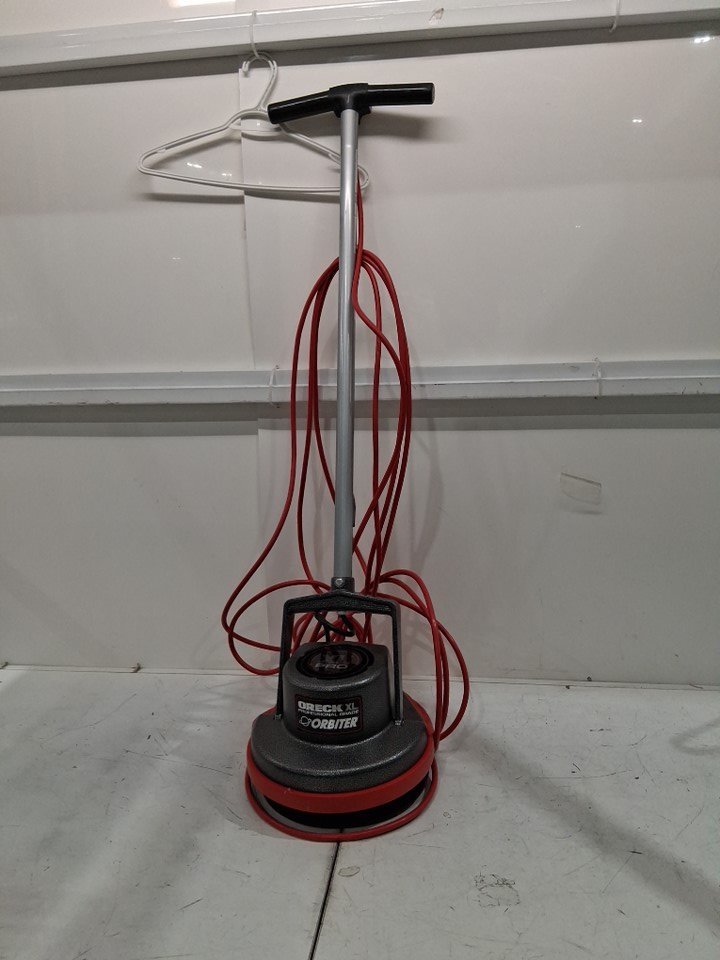 Some red debris on the Floor pad and some red debris on the handles of the product from an unknown substance. product was tested for power