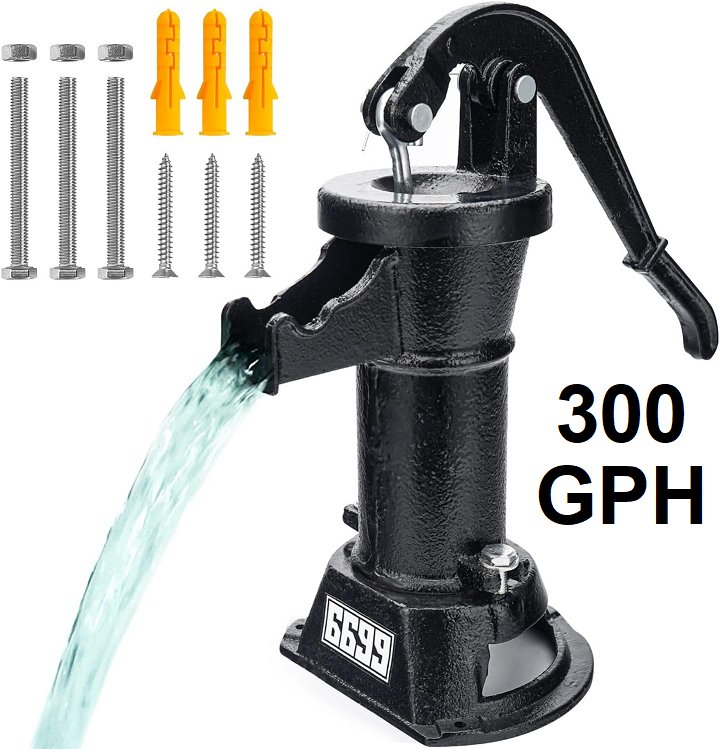 6699 Cast Iron Pitcher Pump - 25ft Maximum Lift - 300GPH - 1-1/4” Pipe Connection - 3" diameter - black (model: swp 300)