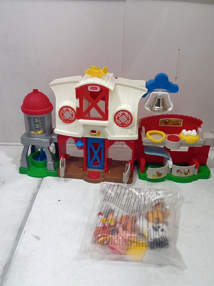 FISHER-PRICE LITTLE PEOPLE CARING FOR ANIMALS FARM RESTAGE CHILDRENS TOY, TEACHES COUNTING, OPPOSITES, ANIMAL SOUNDS AND COLORS (MODEL: jbh64-9997)