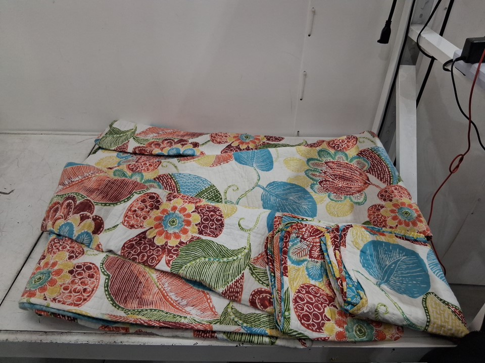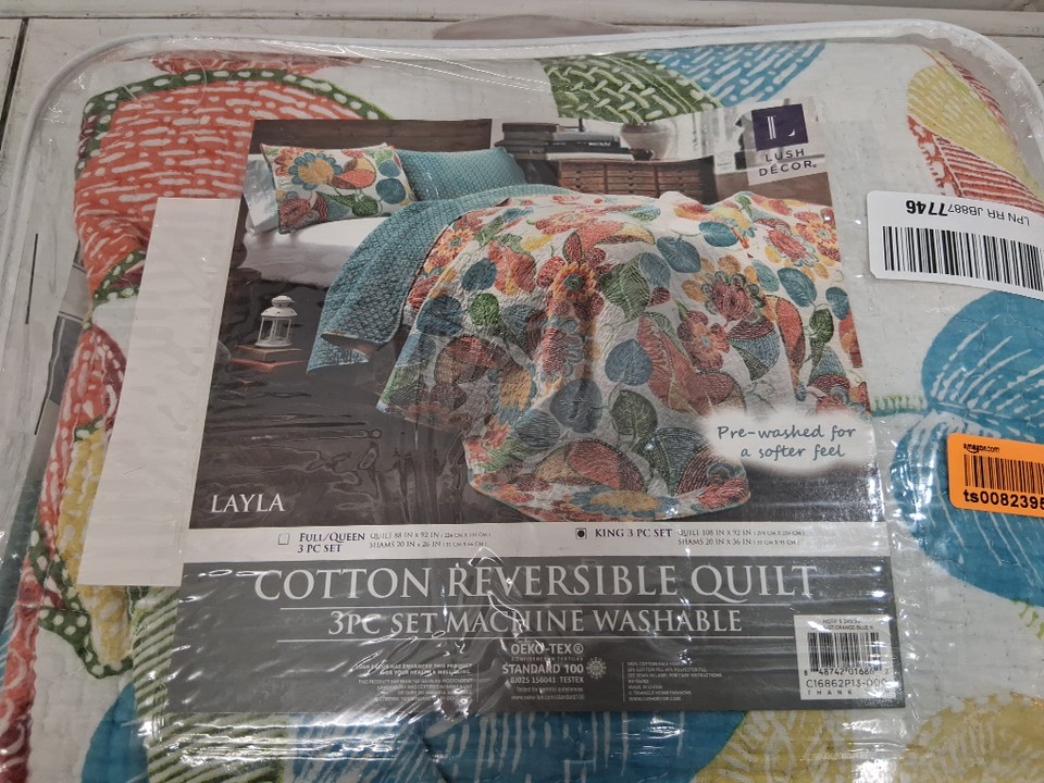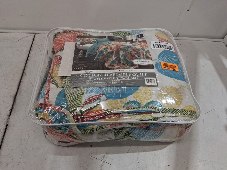 3PC LUSH DECOR REVERSIBLE QUILT BEDDING SET, LAYLA FLORAL LEAF PRINT - KING