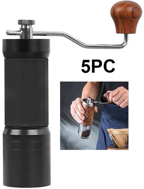 5PC ASELUE MANUAL COFFEE GRINDER WITH ACCESSORIES - MATTE BLACK
