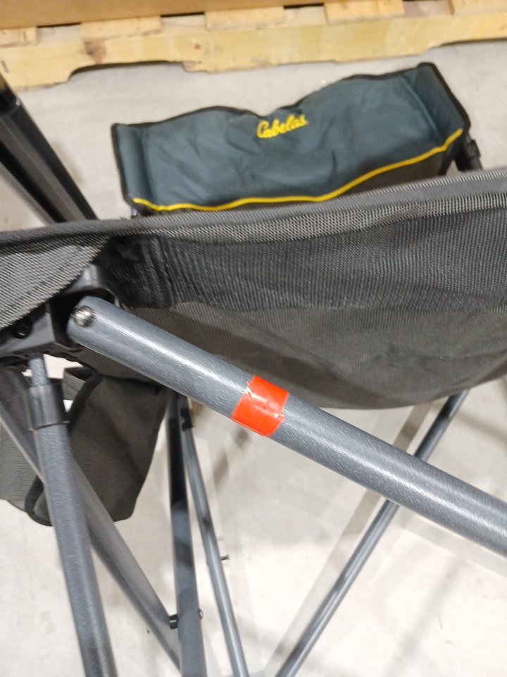 The leg for this item is broken (see images), but when we sat in it during testing it was still able to support our weight.