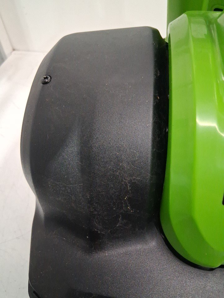 There are a few scuff marks on the bottom shovel piece and some grass from previous use as well as snow stains that should be easily removeable. *GENERIC CONDITION STATEMENT* Our staff is unable to fully test this item due to its nature of operation/function.