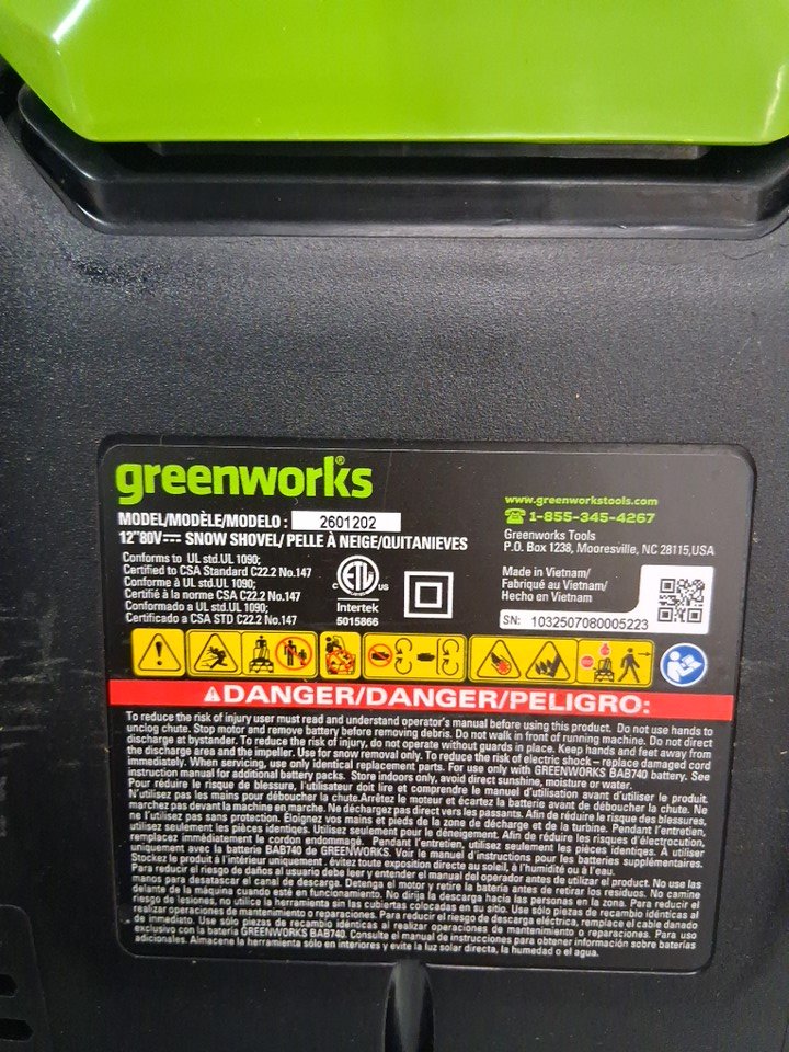 GREENWORKS PRO CORDLESS SNOW SHOVEL *TOOL ONLY* BATTERY and CHARGER NOT INCLUDED - 80V - 12" - Green (MODEL: GLSS80000)