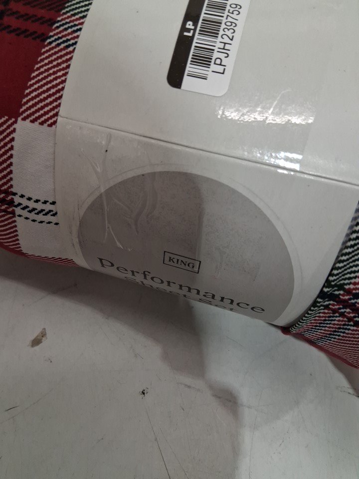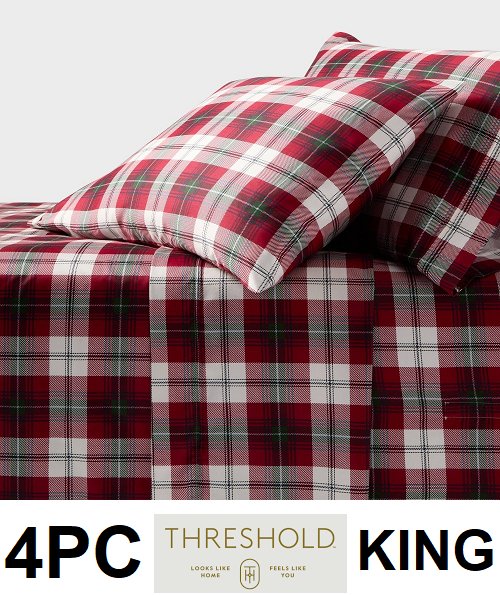 4PC THRESHOLH 400 Thread Count Holiday Performance Sheet Set -KING - Red Plaid
