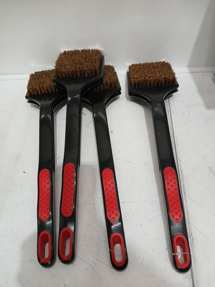 4 EXPERT GRILL BBQ BRUSHES W/ PALMYRA BRISTLES SAFE FOR CLEANING -12" HANDLE-black red
