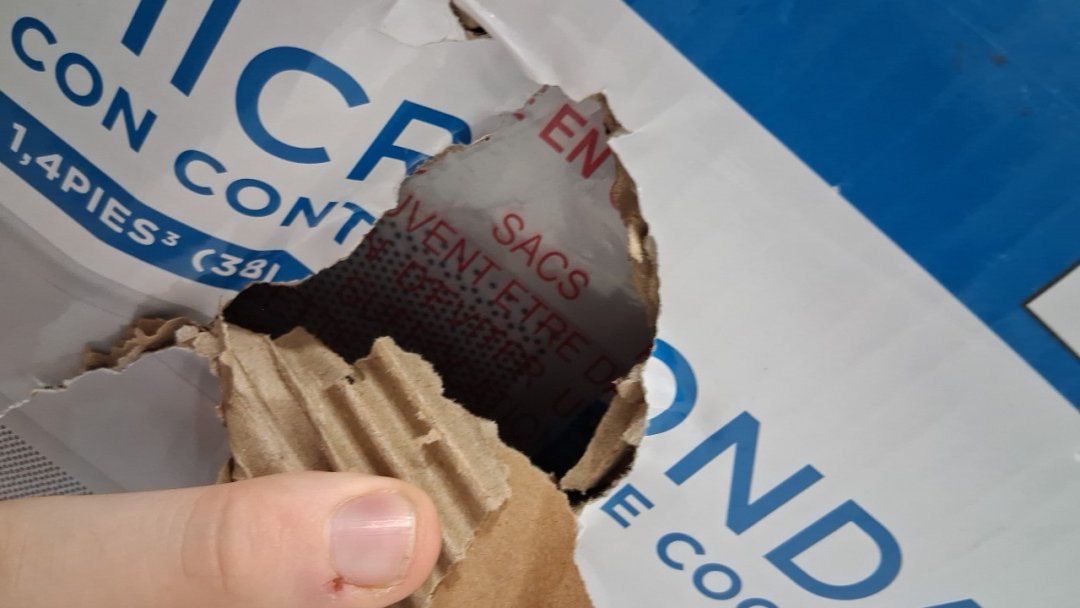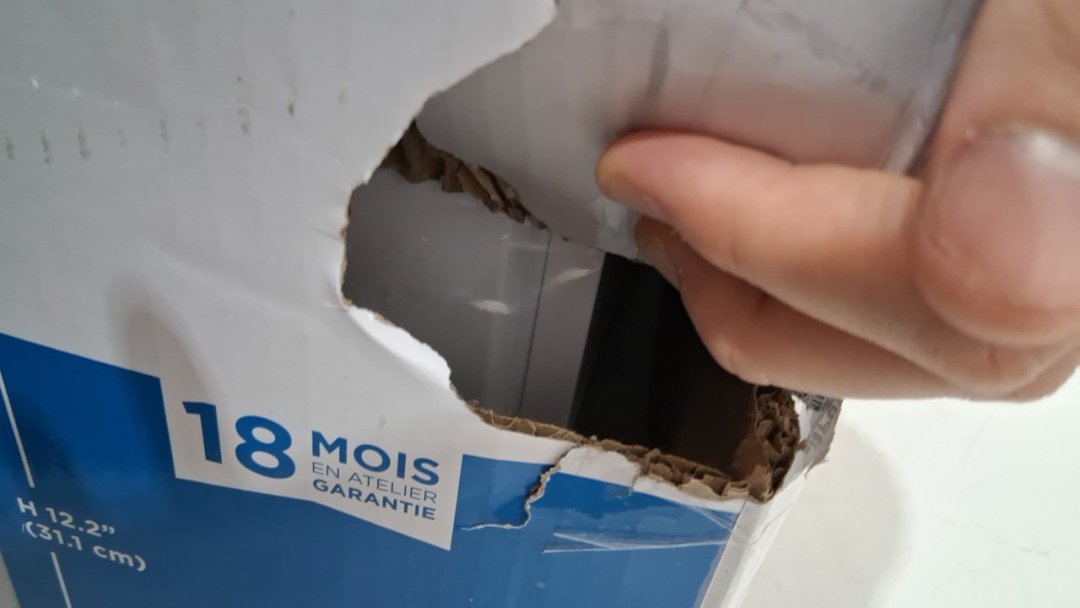 Please note: there are holes and dents to the packaging from shipping, we made sure to check the exposed parts of the item for potential damage and found the contents to be unaffected.