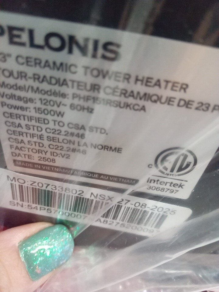 Pelonis electric digital tower heater - 23" - 1500w - black (model: phf151rsukca)