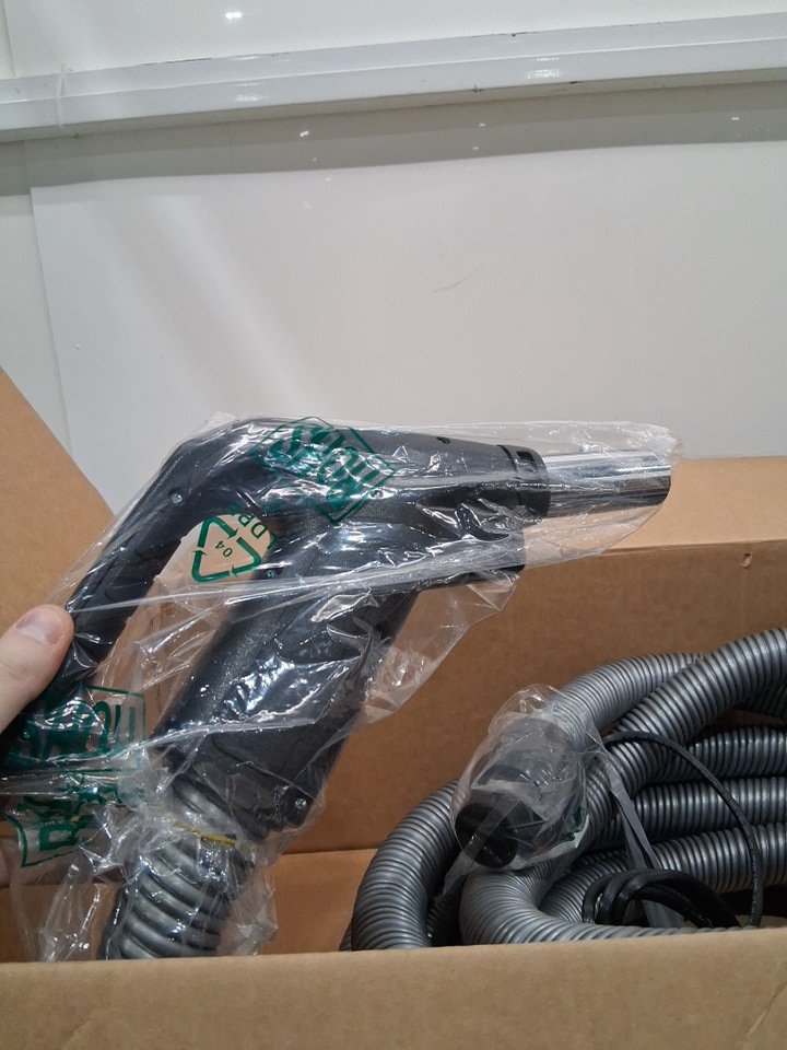 30FT OVO Universal Central Vacuum , Low Voltage Switch at The Handle, Crushproof & Fits Most Inlets-Hose - Black & Grey With Cover (MODEL: ACCHO-30LV-BK)