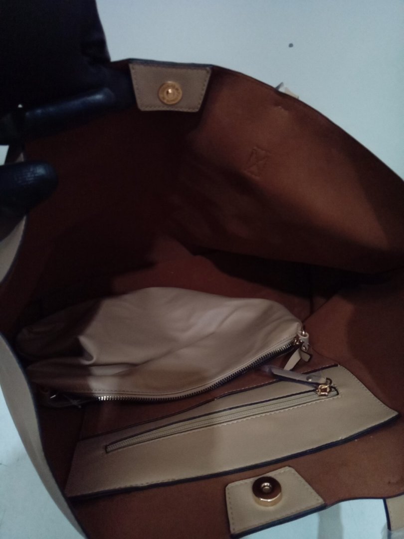 2PC Time and Tru Tote Bag with Crossbody Purse - Brown/Beige