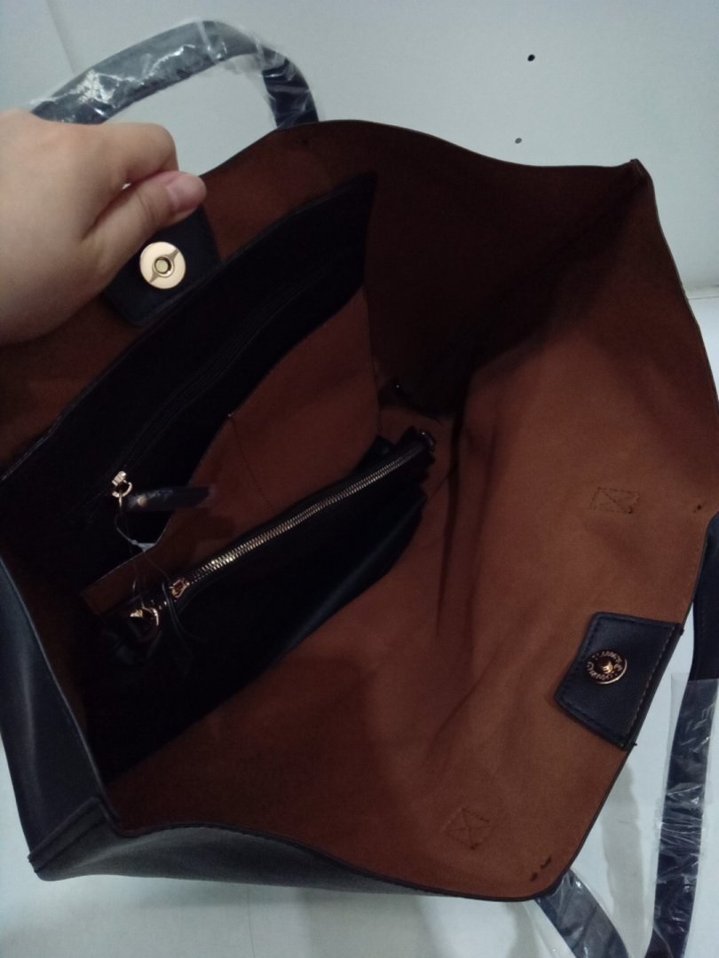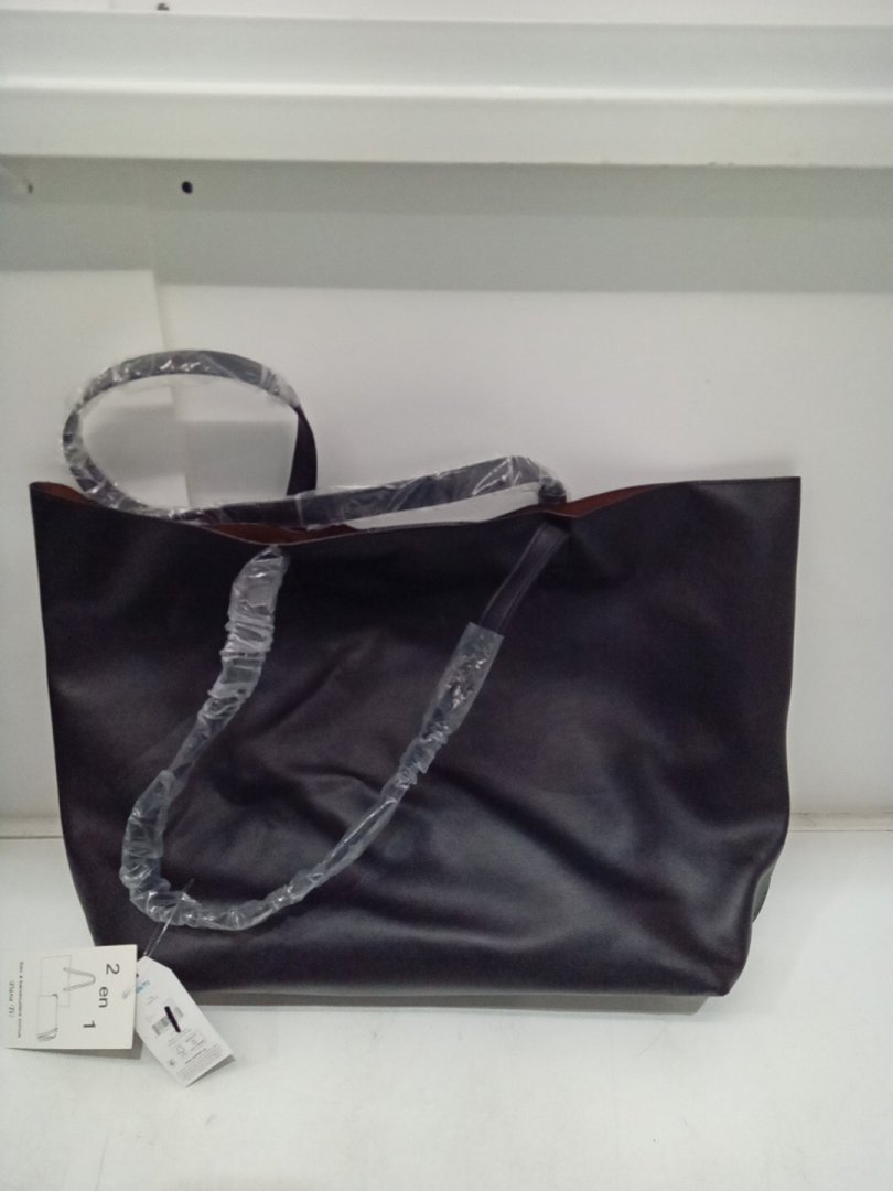 2PC Time and Tru Tote Bag with Crossbody Purse - Black/Brown