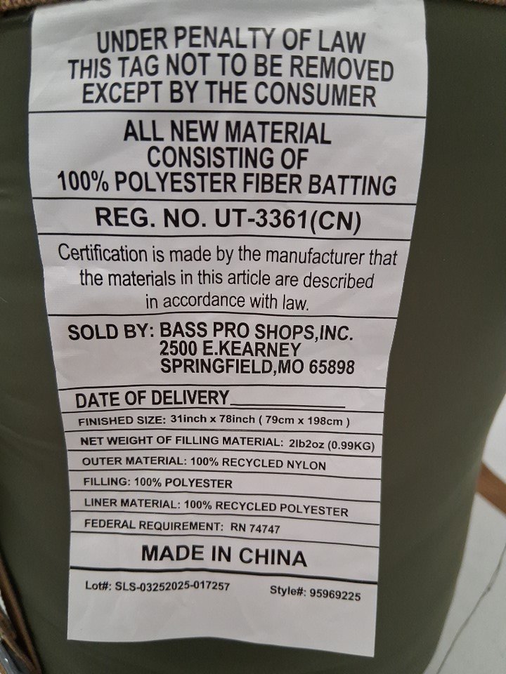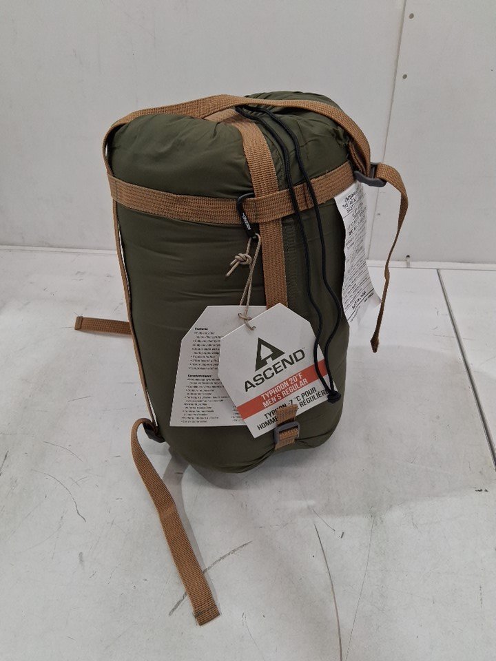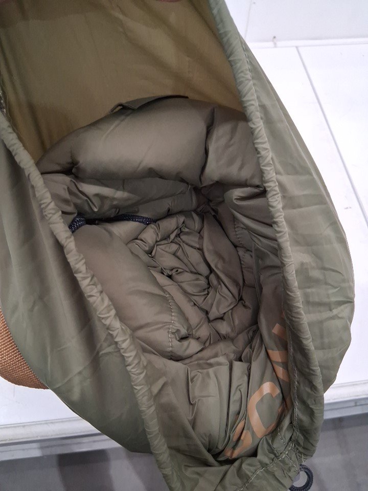 One of the straps on the storage bag has ripped, leaving a small hole in the bottom - see photos. Otherwise, appears to be in new condition with no visible damage to the sleeping bag itself.