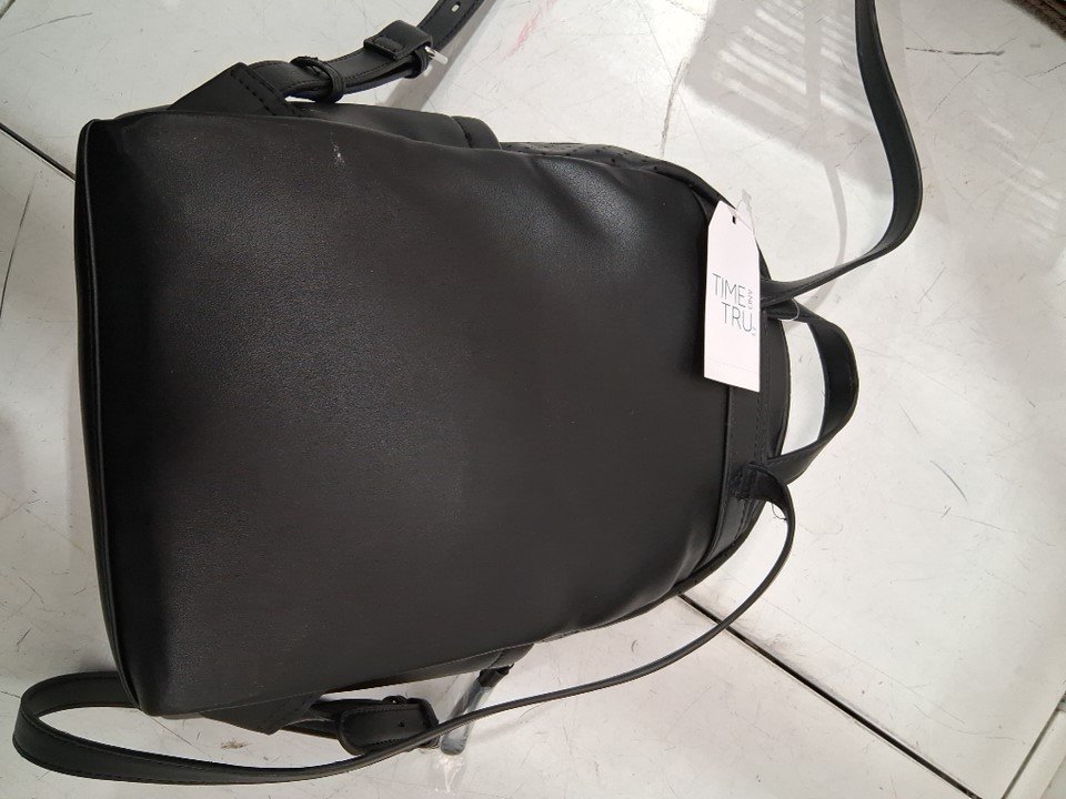 Women's Time and Tru Faux Leather Convertible Backpack / Handbag - 12L - Black