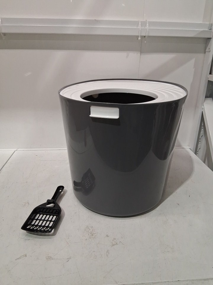 IRIS USA COVERED TOP-ENTRY SCATTER-PREVENTING CAT LITTER BOX WITH SCOOP - LARGE/20.47" x 16.14" x 14.56" - GREY/WHITE - (MODEL: PUNT-530)