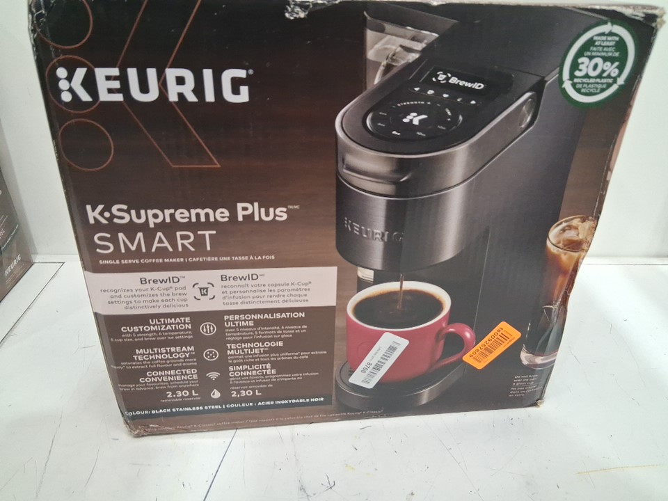 KEURIG K-SUPREME PLUS SMART SINGLE-SERVE COFFEE MAKER WITH ADVANCED APP CONNECTION & 77OZ WATER RESERVOIR - BLACK STAINLESS STEEL (model: k29)