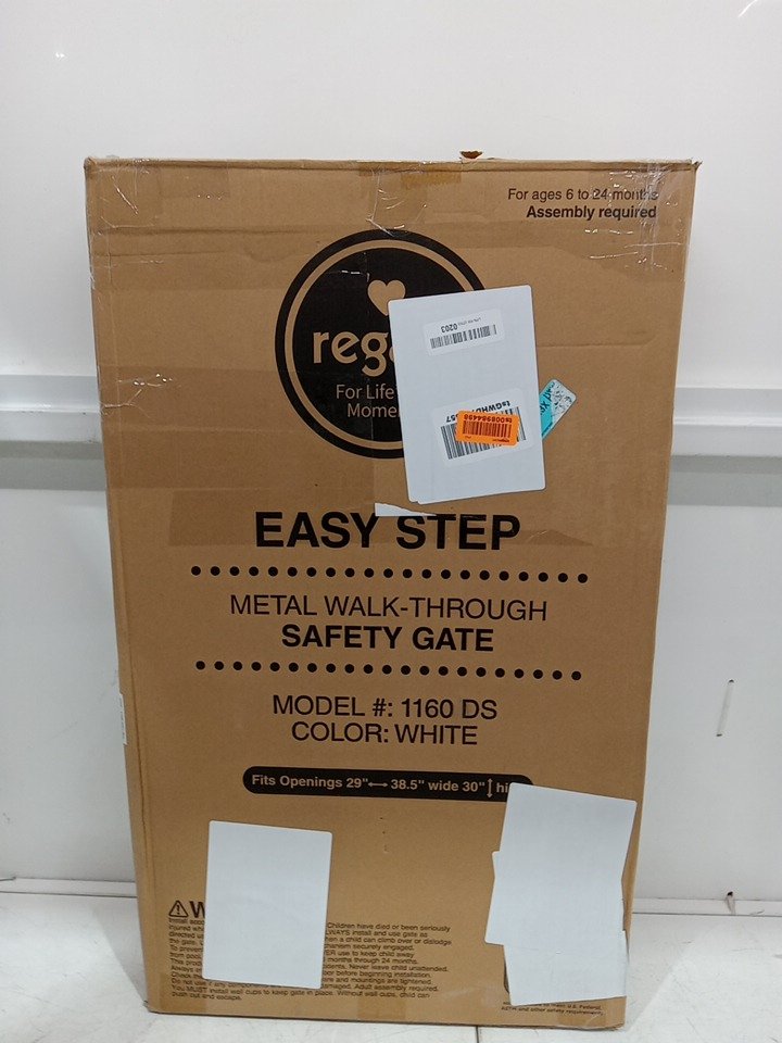 REGALO EASY-STEP METAL WALK-THROUGH SAFETY GATE - 30" x 29'' to 38.5'' - WHITE - (MODEL: 1160DS)